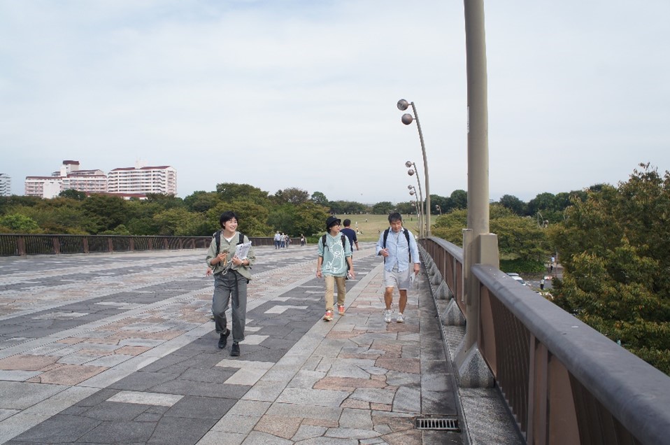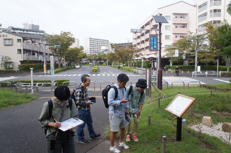 10月12日(日)午後、「都市空間論」で校外授業を実施しました。今回は4名の学生が参加し、東京都と国の事業(亀戸・大島・小松川地区市街地再開発事業、高規格堤防事業)を中心にまち歩きをしながら学びました(写真)。