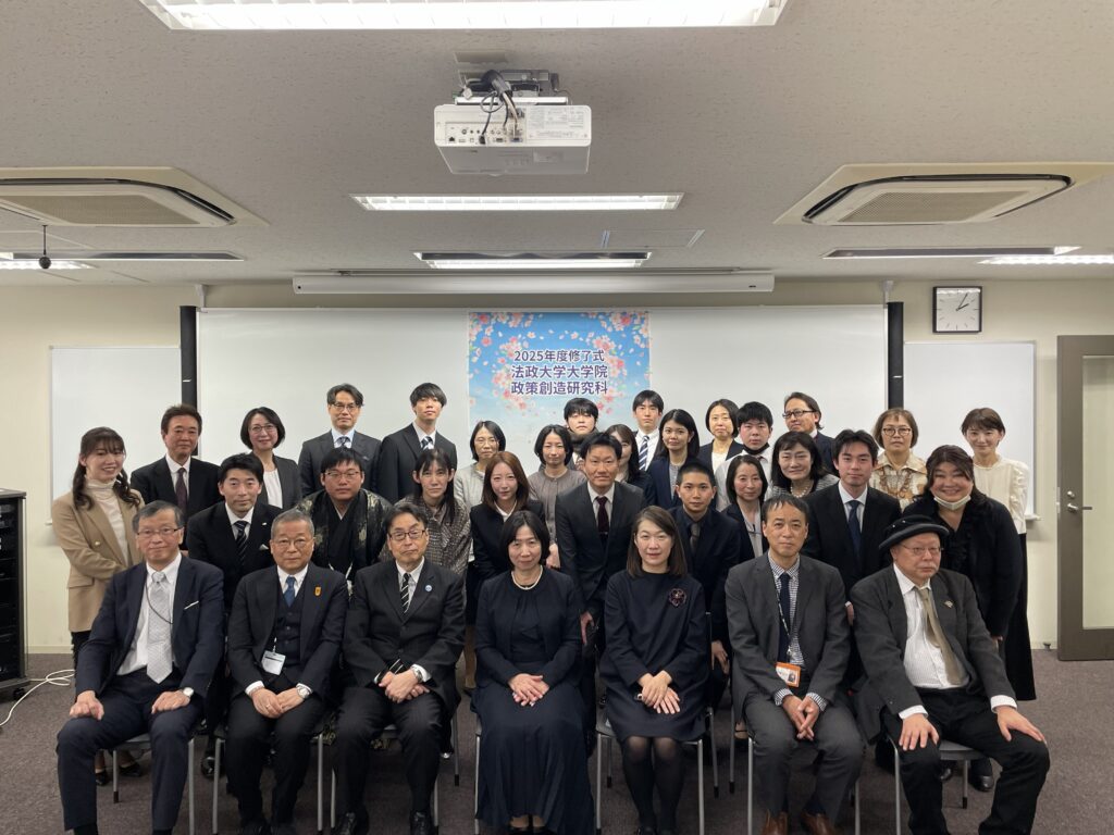 2025年度 学位記交付式・祝賀会が行われました 2026年3月25日 カテゴリー: 05 その他 2025年度 学位記交付式・祝賀会が3月24日(火)に行われました。 【祝賀会集合写真】 修了生の皆様 修了おめでとうございます。益々のご活躍をお祈り申し上げます。